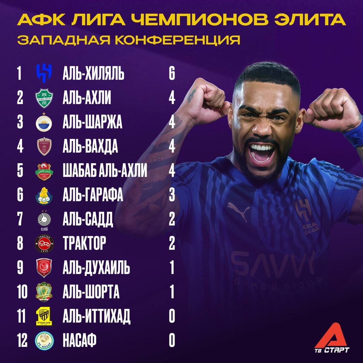 🧐 Как там обстановка в АЛЧ? Всё очень даже интересно! «Аль-Иттихад» удивительным образом не набрал ни одно очко, «Шанхай Шеньхуа» тоже пока не радует. Зато у «Кобе» и «Аль-Хиляля» всё замечательно! Смотрите этот турнир на наших телеканалах! 🤩 🛒 Наше приложение в Google Play 💙 Наше приложение в RuStore 🛒 Наше приложение в App Store