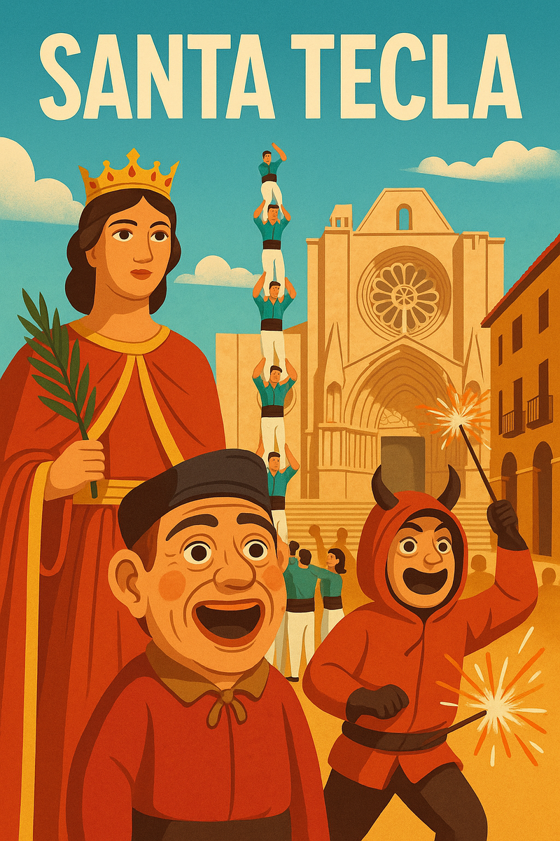 Если вы окажетесь в испанской Таррагоне в конце сентября, приготовьтесь — город буквально кипит жизнью. Узкие улицы старого квартала заполняются оркестрами, танцорами, гигантскими куклами и колоннами людей, стоящих друг у друга на плечах. Это — фиеста Санта Текла, один из самых ярких и старейших праздников Каталонии, который каждый житель Таррагоны ждёт с нетерпением целый год. Праздник посвящён Святой Текле, покровительнице города. Согласно преданию, она была ученицей апостола Павла и приняла мученическую смерть за веру. Считается, что её мощи попали в Таррагону в XIV веке, и с тех пор город отмечает этот день с особым размахом. Но если раньше праздник был религиозным, то сегодня это скорее взрыв народной энергии, в котором священное и весёлое сливаются в одно. Главные события начинаются 15 сентября и продолжаются больше недели. Улицы превращаются в сцену: повсюду звучат барабаны, флейты и традиционные каталонские мелодии. Одно из самых впечатляющих зрелищ — castells, человеческие баш