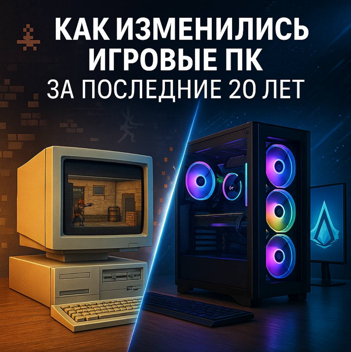 Игровые компьютеры — это зеркало развития всей индустрии технологий. Если в начале 2000-х «игровой ПК» означал огромный шумный ящик с минимальным количеством подсветки и едва живыми кулерами, то сегодня это стильные машины с водяным охлаждением, 4K-графикой и скоростью загрузки за считанные секунды. Давайте проследим, как шаг за шагом менялись игровые компьютеры. В начале 2000-х компьютерный гейминг только набирал обороты. • Процессоры: Intel Pentium III, Pentium 4 и первые AMD Athlon. Частота росла от 1 до 3 ГГц, но одного ядра было мало для будущих игр. • Видеокарты: NVIDIA GeForce 2/3/4, ATI Radeon 9000. Это было начало массовой 3D-графики. • Память: 256–512 МБ ОЗУ — считалось «богатством». • Накопители: HDD на 40–80 ГБ. SSD тогда казались фантастикой. • Мониторы: ЭЛТ-мониторы (огромные и тяжёлые). • Игры: Half-Life, Counter-Strike 1.6, GTA III, Warcraft III. Главное улучшение этих лет — графика. Игры стали трёхмерными и красивыми, появились первые спецэффекты: дым, вода, отражения