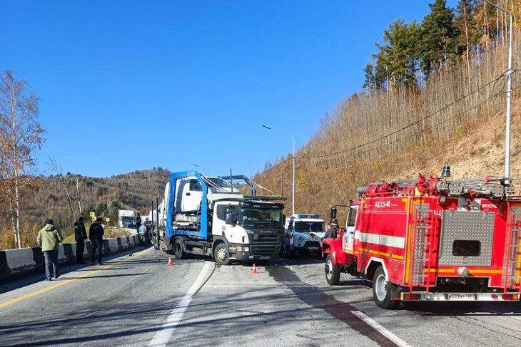 Смертельное ДТП. Легковушка и большегрузы столкнулись на федеральной трассе Р-258 «Байкал». Движение ограничено Авария с участием Toyota Allion и двух большегрузов, один из которых — автовоз, произошла неподалеку от Култука. Сначала движение перекрыли в обоих направлениях. По данным на 17:00, открыли проезд по одной полосе, организовали реверсивное движение. Пассажир легкового автомобиля скончался от полученных травм, водителя госпитализировали. Фото пресс-службы Госавтоинспекции региона 🔷🔹Подпишись на новости Иркутска