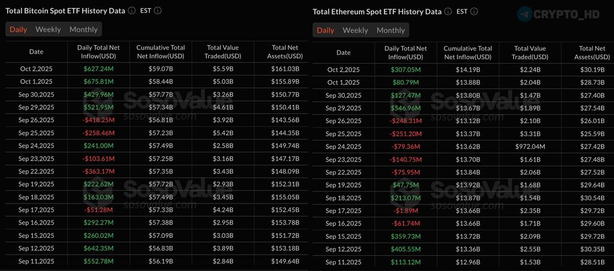 πΉ ΠΠ½ΡΡΠΈΡΡΡΠΈΠΎΠ½Π°Π»Ρ (ΠΈ ΡΠΎΠ»ΠΏΠ°) Π°ΠΊΡΠΈΠ²Π½ΠΎ ΠΈΠ½Π²Π΅ΡΡΠΈΡΡΡΡ Π² Π°ΠΌΠ΅ΡΠΈΠΊΠ°Π½ΡΠΊΠΈΠ΅ Bitcoin ΠΈ Ethereum ETF. Π§ΠΈΡΡΡΠΉ ΠΠ ΠΠ’ΠΠ Π·Π° Π²ΡΠ΅ΡΠ°ΡΠ½ΠΈΠΉ Π΄Π΅Π½Ρ: βͺ#ETH = +$307,050,000. βͺ#BTC = +$627,240,000. Crypto Headlines