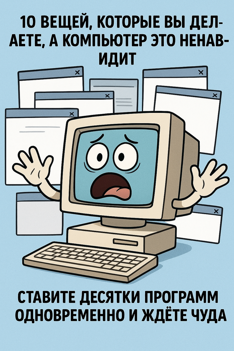 Вы когда-нибудь задумывались, что ваш компьютер думает о вас? Нет? Он точно думает… и иногда злится. Он терпеливый, он старается, но есть привычки, которые заставляют его тормозить, греться и тихо страдать в углу корпуса. Давайте заглянем внутрь головы вашего ПК (ну, почти) и посмотрим, что ему не нравится. Компьютер: «Эй, я не супергерой! Что за марафон из браузеров и мессенджеров?!» Мы все любим многозадачность. Но когда вы открываете 15 вкладок, видеоредактор и ещё пару приложений одновременно — ваш ПК тихо страдает. 💡 Совет: Закрывайте ненужные приложения и используйте автозагрузку разумно. Компьютер: «Пожалуйста… дай мне шанс стать лучше!»
