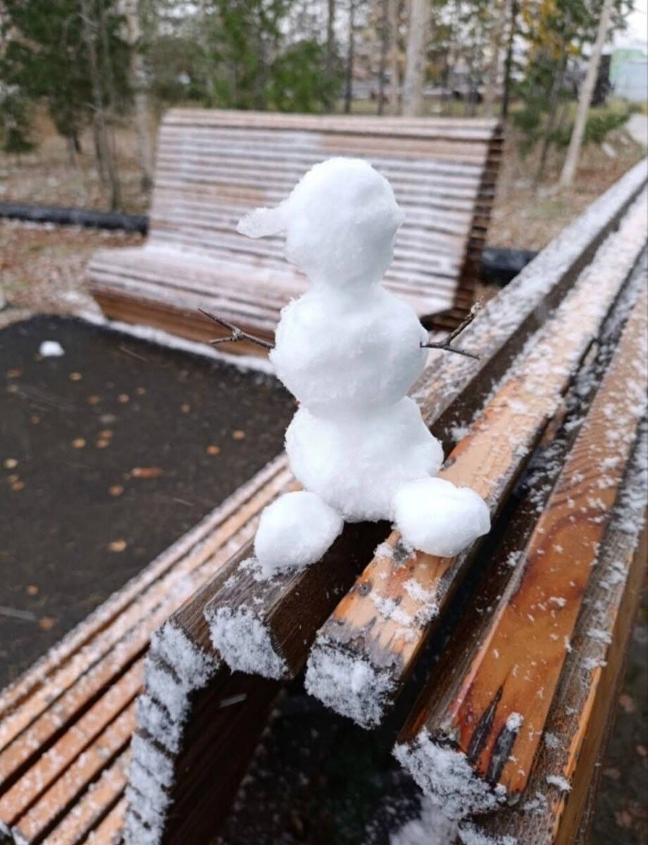 Уже 3 октября жители Ноябрьска отметили появление первых снеговиков. Фотографии были опубликованы с подписью: «Когда кто-то очень соскучился по зиме». Один из снимков демонстрирует снеговика, восседающего на скамье. Его шапочка сделана из крупной шишки, а роль рук выполняют ветки хвойных деревьев. Вторая композиция представляет собой снеговика, устроившегося на спинку лавочки, оснащенного сосулькой в качестве носа и ветвями дерева вместо конечностей.
