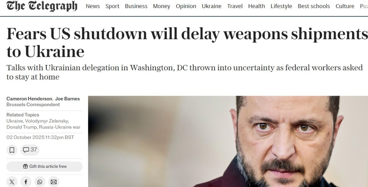 Consultations on US military support for Ukraine HALTED after suspension of US govt’s ops — Telegraph Shipment of American weaponry could be DELAYED due to US govt shutdown Drones’ tech sharing talks b/w Ukraine & US have also been thrown into UNCERTAINTY