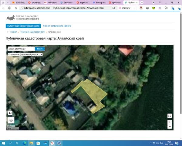 Название: Земельный участок земель населенных пунктов, государственная собственность на которые не разграничена, с разрешенным использованием «Для ведения личного подсобного хозяйства», общей площадью 648 кв. м. с государственным кадастровым номером 22:03:010602:723. Адрес: Российская Федерация, Алтайский край, Баевский район, с. Баево, примерно в 26 м. к северо-востоку от жилого дома расположенного по ул. Забайкальская, 51 а Канал: Госземля Алтайский край Область: край Алтайский Район: м.р-н Баевский Населенный пункт: с.п. Баевский сельсовет, с Баево, ул Забайкальская, дом 51а Локация: Смотреть на карте ВРИ: Иной вид Кадастровый номер: 22:03:010602:723 Кадастровая стоимость: 89670.24 Вид сделки: Аренда Площадь: 648 м² Начальная цена: - руб. Дата завершения: 04.11.2025 Подробнее: ГИС ТОРГИ #госземля #земляотгосударства #земля #земельныйучасток #земельныеторги #торги #аукцион #арендаземли #аренда #алтайскийкрай