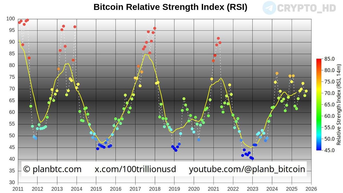 π PlanB: RSI-ΠΈΠ½Π΄ΠΈΠΊΠ°ΡΠΎΡ ΡΠΊΠ°Π·ΡΠ²Π°Π΅Ρ Π½Π° ΠΏΠΎΡΠ΅Π½ΡΠΈΠ°Π» ΡΠΎΡΡΠ° ΠΠΈΡΠΊΠΎΠΈΠ½Π° β ΠΏΠΎΠΊΠ° Π½Π΅Ρ ΠΏΠ΅ΡΠ΅ΠΊΡΠΏΠ»Π΅Π½Π½ΠΎΡΡΠΈ (Π·Π½Π°ΡΠ΅Π½ΠΈΠ΅ 69). Crypto Headlines