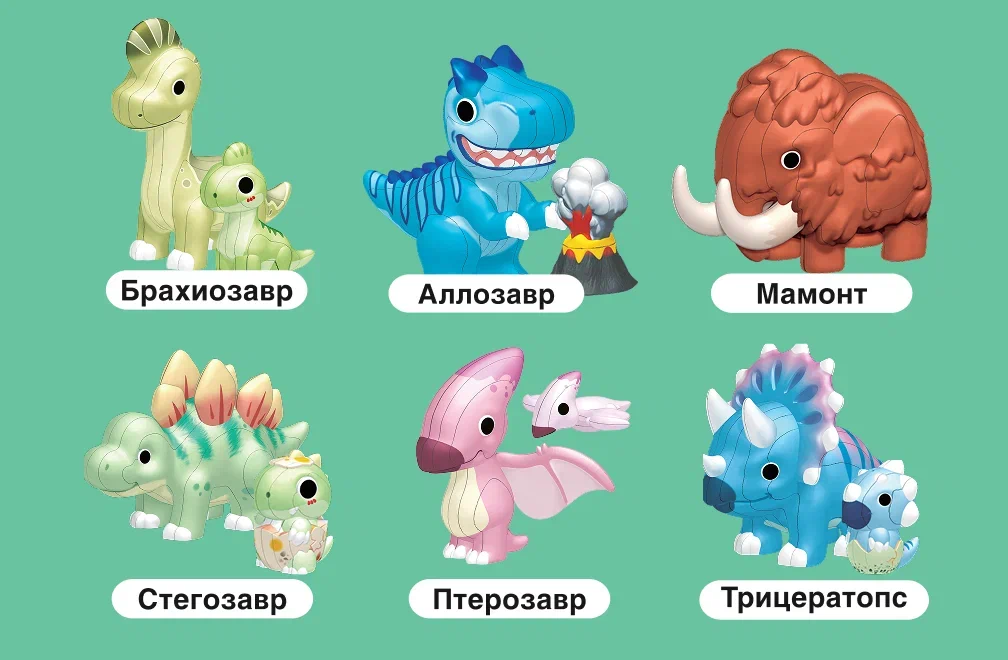 Серия "Динозавры" - для любителей истории. Изучайте древнейших жителей нашей планеты вместе с детьми! Собери своего собственного доисторического гиганта! Этот удивительный травоядный ящер с невероятно длинной шеей станет главным экспонатом твоей коллекции динозавров. Процесс сборки — это просто и увлекательно: детали с липучей основой легко соединяются без клея и ножниц, превращаясь в объёмную и прочную фигуру. А потом — самое интересное! Запусти брахиозавра в плавание по морю-ванне или устрой ему фотосессию на книжной полке — он не боится воды и никогда не расклеивается. Это целое путешествие в прошлое Земли, которое подарит ребёнку море радости и увлечёт! Аллозавр Юрского периода у тебя в комнате! Собери этого доисторического гиганта из липучих деталей без клея. Грозный хищник готов к бою с другими динозаврами и не боится водных приключений в ванне! Для юных палеонтологов от 6 лет. Верни легенду к жизни — собери своего собственного мамонта! Его исполинские бивни, словно выточенные са