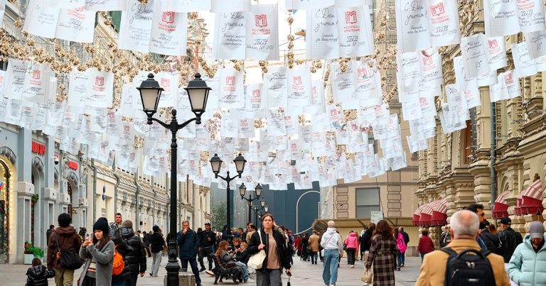 Фраза «Достаем двойные листочки» теперь не только звучит эхом в голове как детская травма, но и шелестит над прохожими на Никольской листами из школьных тетрадей. Детские воспоминания обрели форму временного арт-объекта, только на листах теперь не диктант, а поздравления для учителей. Московские школы отмечают День учителя сегодня, потому что 5 октября выпадает на выходной. В классах все как полагается: стихи, поздравления, конфеты и цветы. На Рижском рынке, говорят, наблюдается небольшой ажиотаж с раннего утра. В инсталляции на Никольской сотни листов висят над головами прохожих, и на каждом — поздравление от одной из 500 московских школ. У учителей явно должно быть хорошее зрение, чтобы разглядеть написанное. Также арт-объект в виде огромного букета должен появиться сегодня на Пушкинской площади. Как будто все ученики в этот день сговорились и решили поздравить всех преподавателей сразу без лишних флористических затрат. Вряд ли этот объект составит конкуренцию по обсуждаемости «Садов