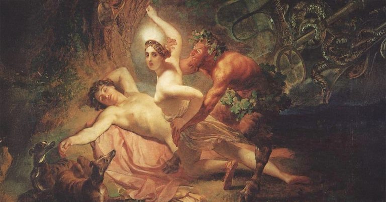 Речь идет о картине Карла Брюллова «Диана, Эндимион и Сатир», и это тот случай, когда лот действительно представляет большую ценность. Это одна из трех известных авторских версий полотна: две другие находятся в Третьяковке и Русском музее, а третья скоро обретет частного владельца. А еще это последнее произведение искусства, написанное Брюлловым в России, до отъезда в Европу на лечение. Оценочная стоимость картины — 1 млн долларов, сообщают в Московском аукционном доме. Оригинал «Дианы, Эндимиона и Сатира» написан в 1849 году по мотивам новеллы итальянского поэта Джамбаттисты Касти. На полотне изображен мифологический сюжет о юноше Эндимионе, пленившем Диану, и Сатире, который похищает богиню. Афанасий Фет посвятил этой картине одноименное стихотворение: … Диана, берегись! старик сатир не дремлет.