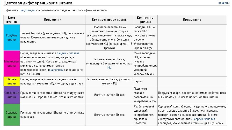 Помнишь «Кин-дза-дза!» и систему цветовой дифференциации штанов на планете Плюк?