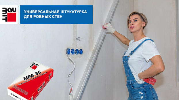 Практически любой серьёзный ремонт или строительство загородного дома обязательно будет включать такой этап, как оштукатуривание наружных и внутренних стен. Эти работы очень важны, так как подготавливают стены к последующей декоративной отделке. На рынке представлен огромный выбор штукатурок на основе цемента, но далеко не все из них можно назвать универсальными. В новой статье на канале Baumit Russia рассмотрим, есть ли состав, который можно было бы наносить как вручную, так и машинным методом, подходящий для толстослойного выравнивания, с возможностью использования на улице и в доме. Читайте также: ➡️ 5 видов отделки фасада — на все случаи жизни. Прошли те времена, когда строителям на объекте приходилось самостоятельно готовить штукатурный раствор, смешивая все компоненты. Сейчас повсеместно используются готовые штукатурные цементно-известковые смеси, например, Baumit MPA 35 Fine. Данную штукатурку можно наносить практически на любое основание, она подходит для внутренней и наружной