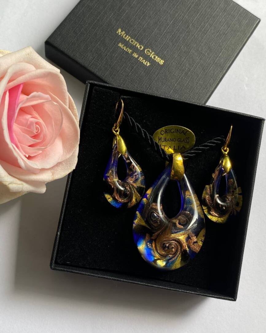 Неповторимый набор подвеска и серьги с золотом, что придает украшению оригинальность. Элегантная форма подвески и серёжек в виде капель, и их таинственное свечение, не заставит пройти мимо вас без внимания 💙 Ручная работа Размер подвески 5 х3,5 см Размер серег 3,2х2 см Материал муранское стекло (murano glass) Набор Капли (Goccia) из муранского стекла 7500₽
