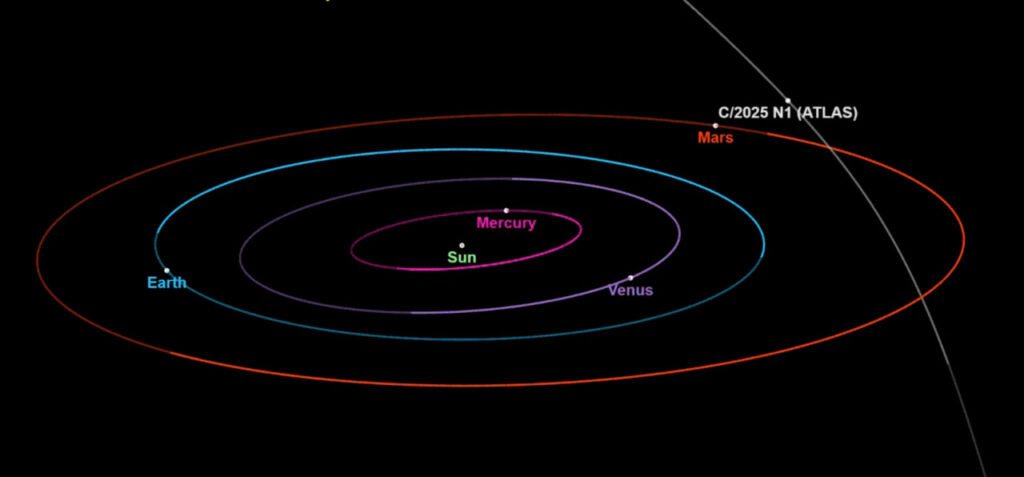 Объект 3I/ATLAS, прилетевший из-за пределов нашей звездной системы, 3 октября подлетит к Марсу на расстояние около 28 млн км. Далее он пересечет орбиту планеты, а 29 октября приблизится к Солнцу — на дистанцию 200 млн км. После этого начнется его выход из Солнечной системы. Землю объект обойдет стороной. В день максимального сближения с Солнцем наша планета будет находиться с противоположной стороны орбиты, что исключает возможность наблюдения. С Венерой 3I/ATLAS пройдет ближе — 3 ноября он окажется в 100 млн км от нее. Астероид движется со скоростью более 50 км/с. Такая траектория указывает на его внезвездное происхождение: он не задержится в нашей системе, но Солнце изменит его маршрут. Выброшенный гравитацией в новое направление, он продолжит путь по Галактике.