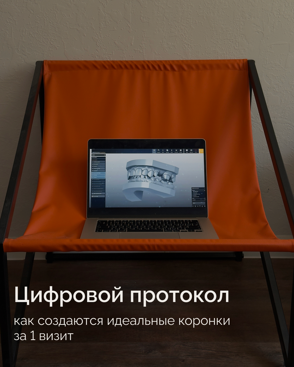 Цифровой протокол — это комплекс технологических этапов, который позволяет полностью отказаться от традиционных слепков и длительного ожидания изготовления коронки в лаборатории. Вместо этого используется интраоральный сканер, компьютерное моделирование (CAD) и станок с ЧПУ (CAM) для создания конструкции прямо в клинике.
