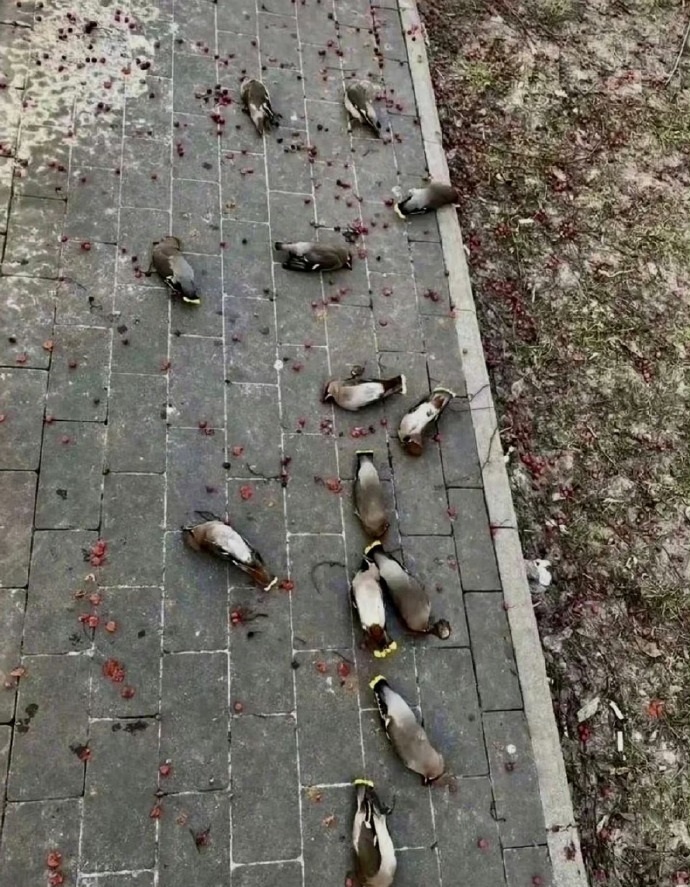 Птицы лежат на тротуаре: Они живые, просто немного опьянели
