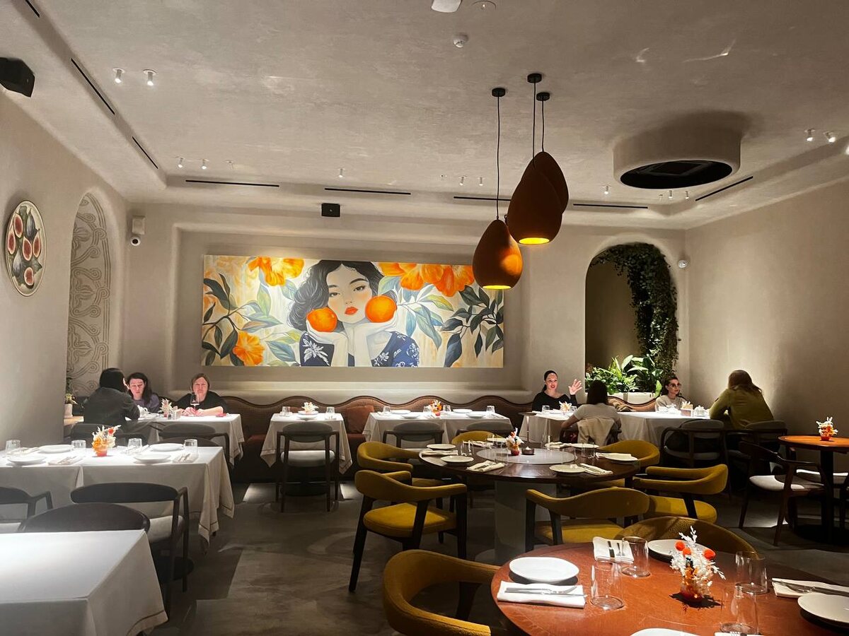 Eliso — новое бистро, открывшееся не так давно на Поварской улице, недалеко от Арбата. Позиционируется оно как место, где можно попробовать грузинскую кухню в современной интерпретации без яркого фольклорного колорита. И если собственно грузинской кухней в Москве никого не удивишь, то такой подход встречается куда реже, поэтому мы в «Еде без границ», конечно, не могли пройти мимо. Интерьер Полностью соответствует заявленной концепции. Чистый, минималистичный, как любят в Москве, но с узнаваемыми грузинскими акцентами вроде орнаментов на стенах, оранжевых светильников, неуловимо напоминающих квеври, и по-южному яркого панно на одной из стен. Оно, кстати, уже успело стать визитной карточкой заведения. Еда В меню можно найти все позиции, которые олицетворяют традиционную грузинскую кухню, за это можно быть спокойными. Дополняют их классические блюда с необычными твистами на европейскую и даже азиатскую классику. Так, сациви можно попробовать с цыпленком, а можно — с приготовленными на гр