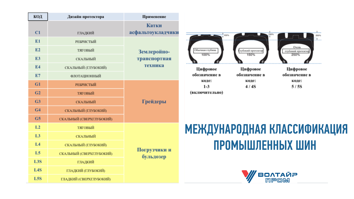 Единая общепринятая система классификации позволяет производителям отребителям использовать общие обозначения, понимать ключевые характеристики моделей шин и корректно подбирать их не только под конкретный вид техники, но и условия эксплуатации.