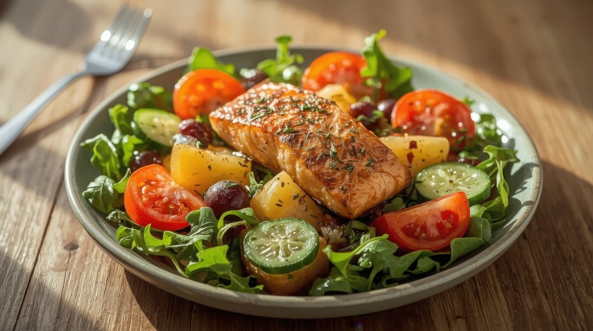 Салат с семгой и картофелем: сытный завтрак за 15 минут