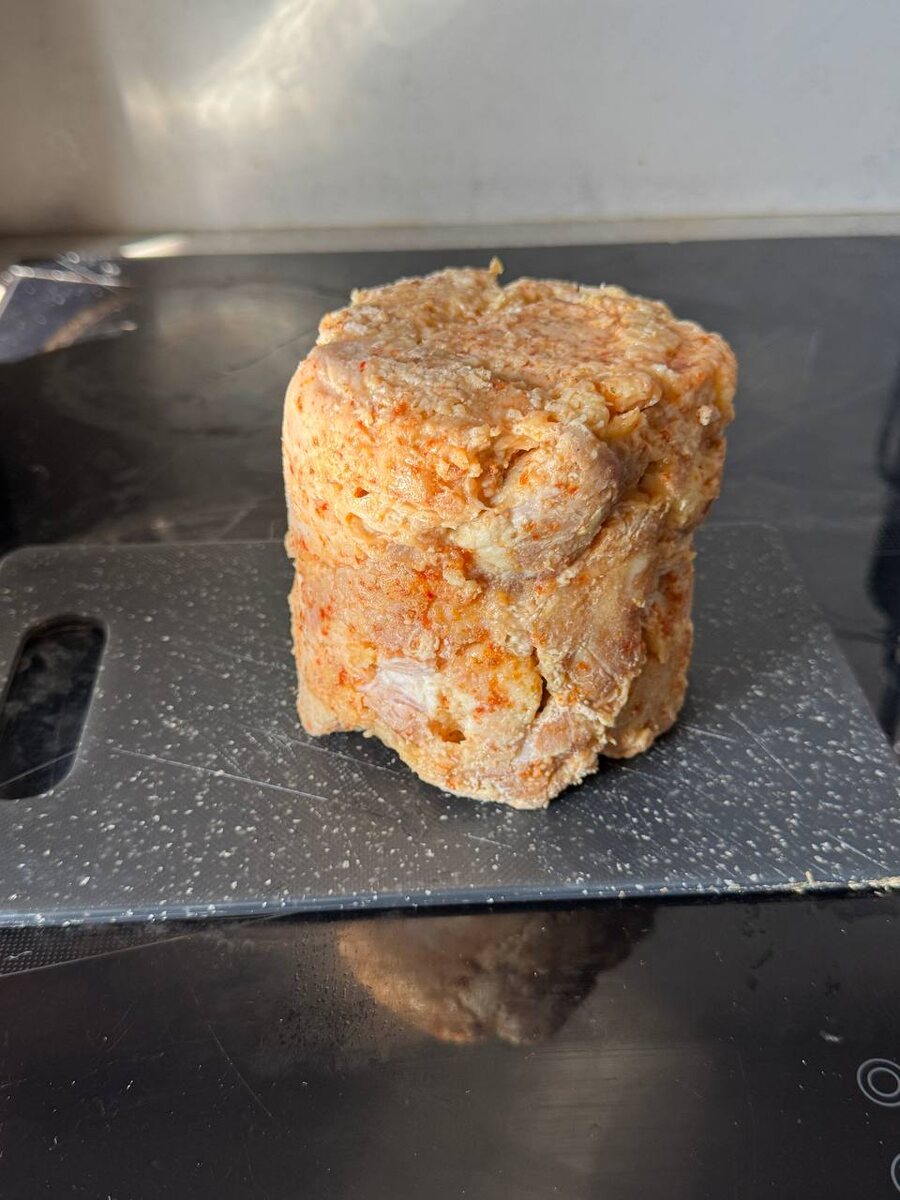 Ветчина готова. Что ж. Ошибки учтены. Нужно плотнее завязывать пакет, чтобы сок не выходил. А-то он у меня весь ушел в воду(((вместе с желатином и сыром((( и плотного сцепления кусочков не получилось. Но режется прекрасно. Мягкая, нежная. Со специями можно поиграть. В общем вкусно и безвредно.