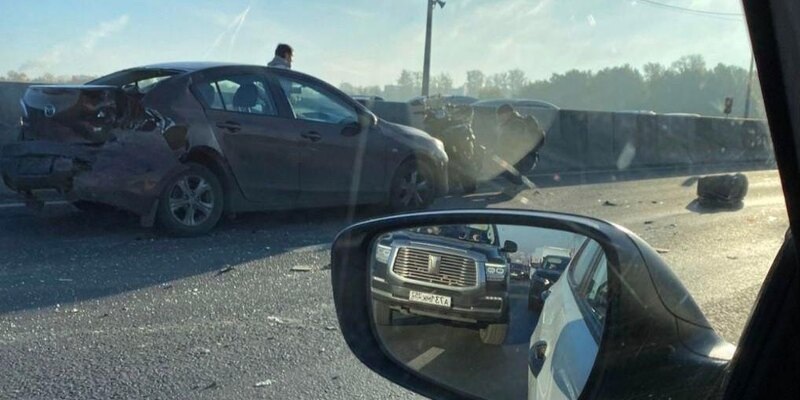 Огромная пробка образовалась на Мызинском мосту из-за массового ДТП