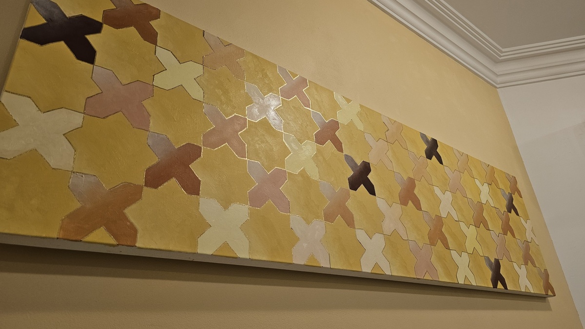 Эта картина посвящена разнообразию народов, живущих в Катаре. На фоне пустыни, где, казалось бы, всё однотонно, рождается удивительное многоцветие человеческих судеб и культур. Разные оттенки форм символизируют разные нации и традиции, которые здесь переплетаются, сохраняя уникальность и создавая единый узор — живой, богатый и гармоничный. Это о том, как в одном месте, среди песков, рождается настоящее многообразие. Размер 120 на 60 см. Холст масло. #художник #живопись #вахабештоев #арт
