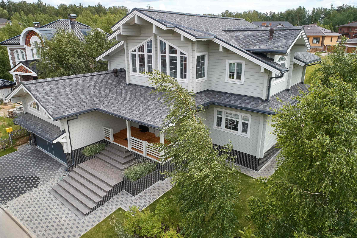 Проект деревянного дома Канадец в 2019-м стал самым красивым деревянным домом по версии народного жюри конкурса «Деревянные дома». Площадь — 404 м². Здесь нет второго света, зато потолки первого этажа целых 3,5 метра. В тандеме с большими белыми окнами это даёт дому невероятное ощущение простора и света. Планировка: Первый этаж — гостиная, кухня-столовая, кабинет, постирочная и санузел. Второй этаж — три спальни, две просторные гардеробные и два санузла. Плюс удобный гараж на два авто с входом прямо в дом. Красота в деталях и в масштабе!