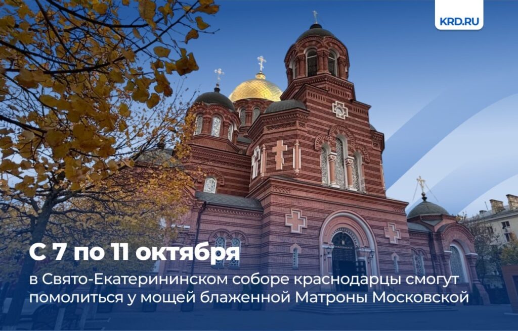 С 7 по 11 октября в Свято-Екатерининском кафедральном соборе Краснодара будет находиться ковчег с частицей мощей блаженной Матроны Московской.