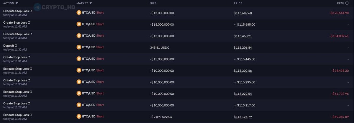😐 Трейдера qwatio ликвидировало за 1,5 часа! Его очередное возвращение снова закончилось провалом: 5 дней назад он занес на Hyperliquid $4,220,000 и начал шортить #BTC и #XRP, а после череды ликвидаций у него осталось всего $668,000. Но это его не остановило – он просто сменил «казино» и продолжил игру – перевел все остатки на биржу GMX, где с 95x плечом открыл шорт по BTC на $59,890,000… Позиция продержалась всего 1,5 часа, после чего была ликвидирована. Crypto Headlines
