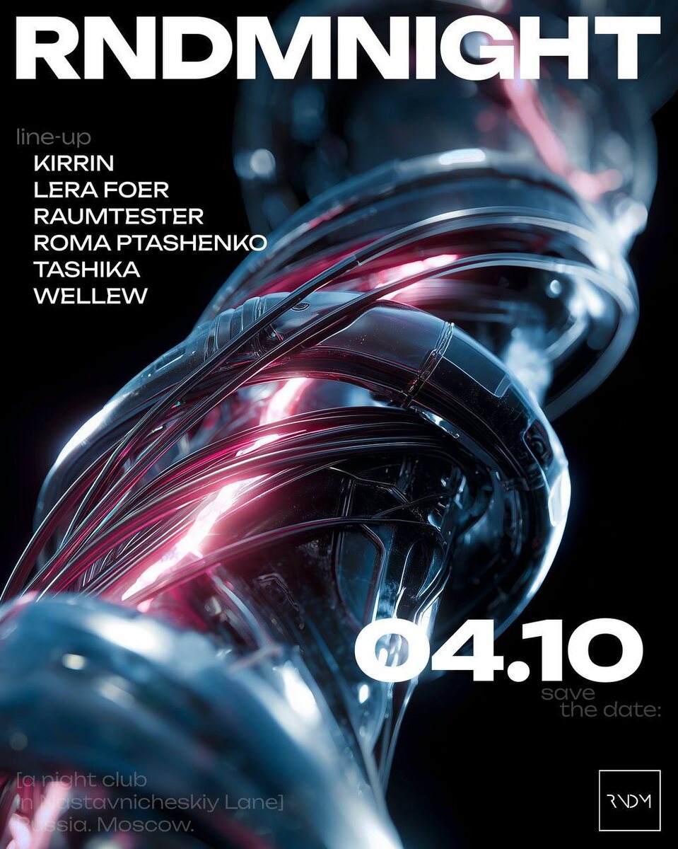04 ОКТЯБРЯ | RNDMNIGHT В эту ночь на фирменной вечеринке дебютируют две прекрасные артистки — Lera Foer и Tashika. Хайлайтами ночи станут Сережа Raumtester и Roma Ptashenko, знакомые всем по своим фееричным выступлениям и харизме. Также на нашем ивенте дебютирует Толя Kirrin из объединения Кисло, знакомый вам по New Faces Night. Ну и, конечно, с нами будет основатель клуба — Wellew. 🎫 - rndmnight.ticketscloud.org 📆 4 октября, в 22:00 📍 RNDM, Москва, Наставнический пер., 13/15с3