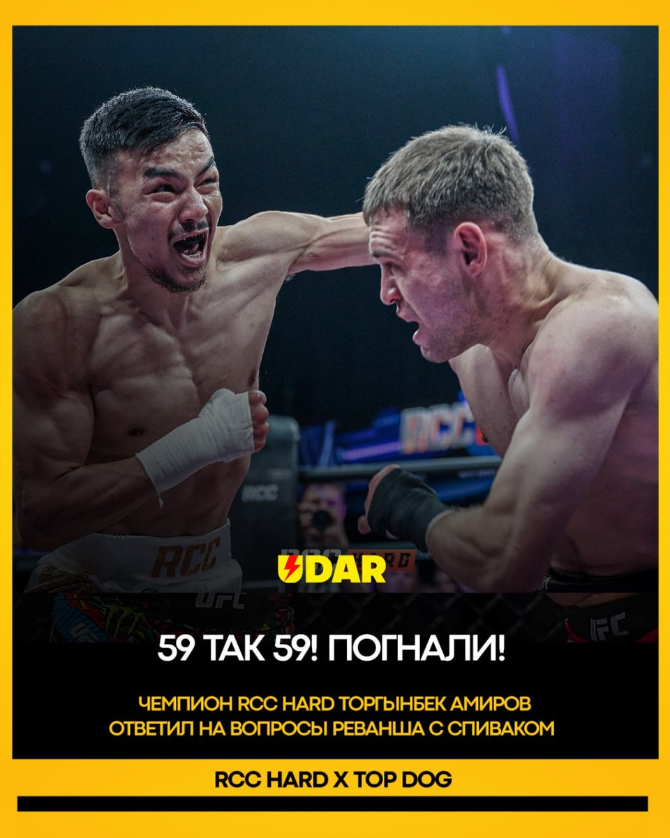 ❗️⚡️Чемп RCC Hard дал согласие на реванш против Спивака: Амиров принял условие чемпа Top Dog. 💬 "59 так 59! Погнали!" - ответил в социальных сетях чемпион RCC Hard Торгынбек Амиров, соглашаясь с условиями Спивака. Напомним, 27 сентября Амиров победил Спивака решением судей. После боя Дима Спивак сказал, что если бы поединок состоялся в 59 кг, то результат мог быть другим. 👊За кого топим в реванше? 🔥 - Торгынбек Амиров; ❤️ - Дмитрия Спивак
