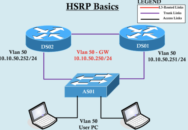Вот пример настройки HSRP с разными приоритетами на двух коммутаторах ядра, который обеспечит отказоустойчивость шлюза по умолчанию. В этом примере два коммутатора ядра (Core-SW1 и Core-SW2) образуют HSRP-группу для виртуального шлюза. Core-SW1 будет активным устройством (Active), а Core-SW2 — резервным (Standby). Топология и адресация Пояснения к командам: Повысить надежность позволяет функция track. Она автоматически понижает приоритет, если один из upstream-интерфейсов перестает работать, обеспечивая переключение на резерв, даже если основной коммутатор ядра еще жив. Пояснение: Если интерфейс GigabitEthernet1/0/1 на Core-SW1 отключится, его приоритет в HSRP группе 1 снизится на 60 (со 150 до 90). Core-SW2, имея приоритет 100, станет активным маршрутизатором. После настройки используйте команды для проверки статуса HSRP. Ожидаемый вывод, где Core-SW1 находится в состоянии Active, а Core-SW2 — Standby: Настройка HSRP с разными приоритетами, preempt и отслеживанием интерфейсов создаст