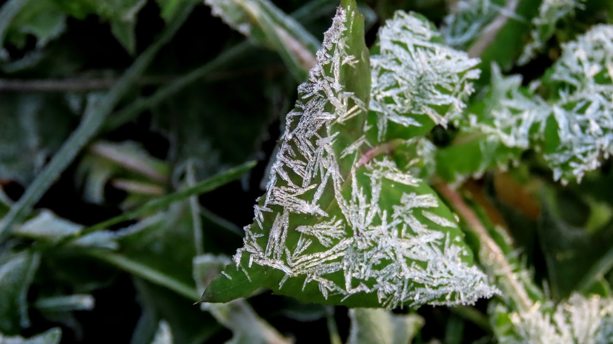 Сегодня, 1 октября, утро встретило нас сюрпризом. На листьях деревьев застыли хрупкие кристаллы ледышек, словно сама осень решила примерить бриллианты зимы. Этот морозный узор, сверкающий в первых лучах солнца, был настолько прекрасен, что казалось, будто природа замерла в ожидании чего-то волшебного.