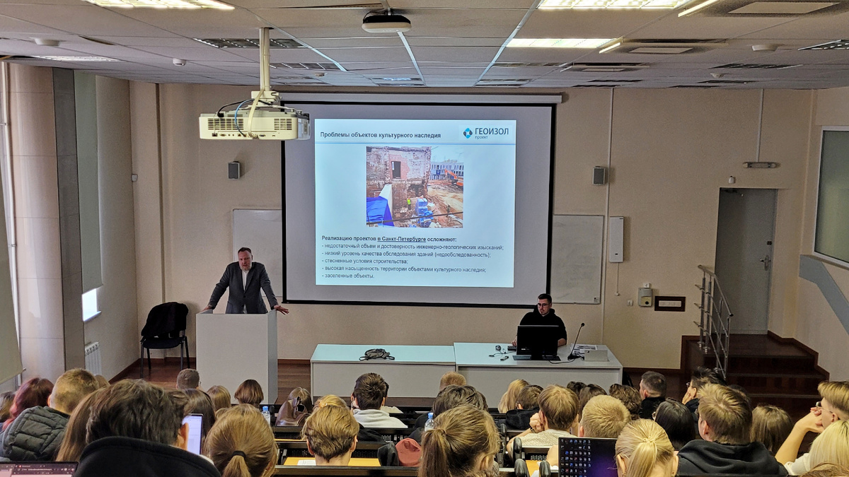 💼 Сегодня, 01 октября 2025 года, главный конструктор компании Павел Александров по приглашению преподавательского состава прочитал на кафедре технологии строительного производства СПбГАСУ открытую лекцию на тему «Реконструкция объектов культурного наследия для приспособления под современное использование – геотехнические аспекты». 🔥 Лекция привлекла без малого 100 студентов – в аудитории практически не осталось свободных мест. Особенно приятно было видеть среди слушателей нашего многоуважаемого коллегу – профессора Рашида Александровича Мангушева. 📌 Специалисты «ГЕОИЗОЛ Проект» активно работают с профильными высшими учебными заведениями и всегда готовы делиться своим богатым опытом. ✅ С презентацией к лекции Павла Александрова можно ознакомиться на сайте «ГЕОИЗОЛ Проект»: https://geoizolproject.ru/wp-content/themes/megaproject/images/geoizol/36%20object-culture.pdf
