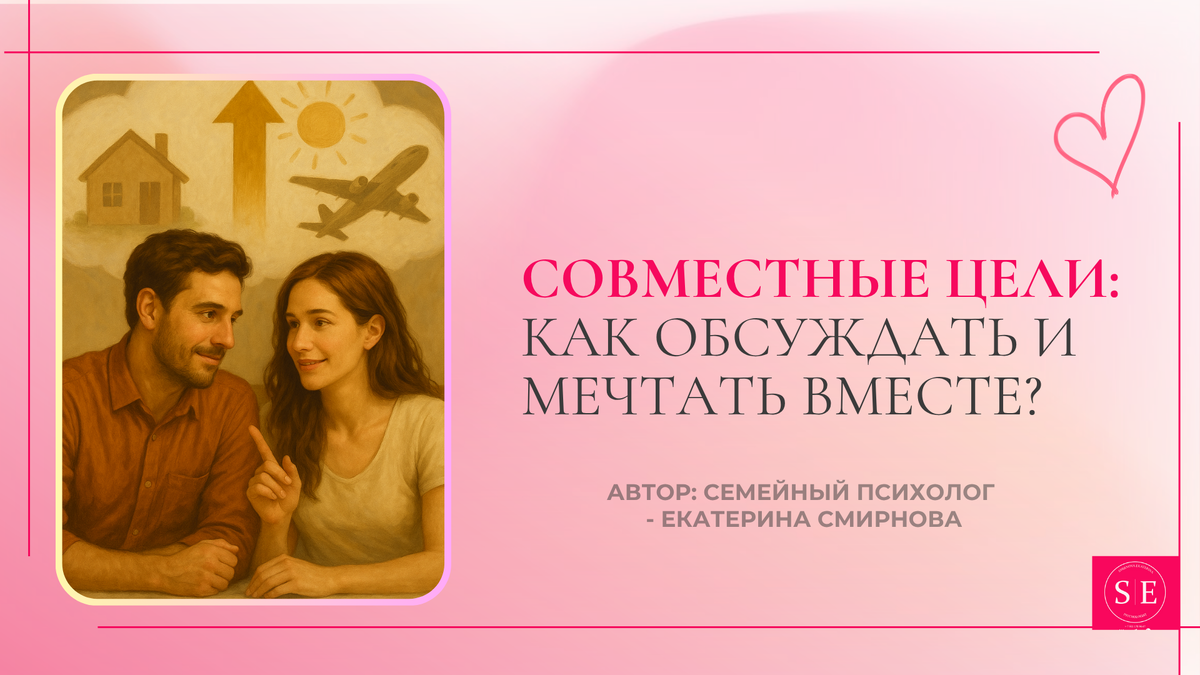 Автор: Екатерина Смирнова — семейный психолог, эмоционально-фокусированный терапевт, опыт с 2017 года Когда в паре нет общих целей, отношения постепенно теряют направление. Люди вроде бы рядом, но словно в разных поездах. Один мечтает о доме за городом, другой — о переезде за границу. Один хочет второго ребёнка, другой — освоить новую профессию. И каждый чувствует: «Мы не слышим друг друга». Сегодня поговорим о том, как обсуждать цели в паре, чтобы не потеряться в спорах, а наоборот — стать ближе, научиться мечтать вместе и двигаться как команда. Совместные цели — это не только про планирование. Это про ощущение «мы», про принадлежность, про то, что нас объединяет не только быт, но и внутренние ориентиры. По данным исследовательского центра Pew Research, пары, которые обсуждают и формулируют общие цели, в 3,2 раза чаще сообщают о высоком уровне удовлетворённости отношениями. В эмоционально-фокусированной терапии (ЭФТ) мы говорим: общие мечты укрепляют эмоциональную привязанность. Это с