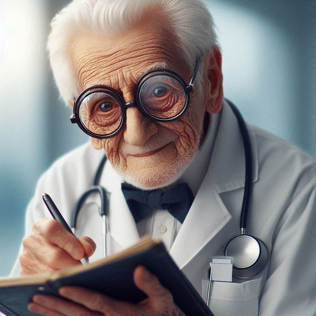 Мужчина был низкого роста, седой, покрытый глубокими морщинами. На его носу были очки с толстыми линзами, из-за которых его глаза казались непропорционально большими.