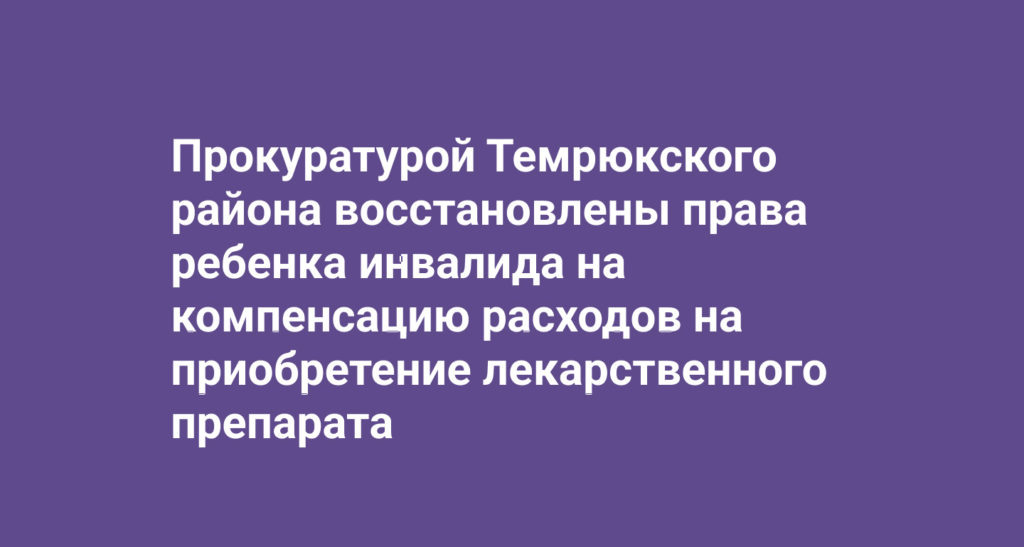 Прокуратура Темрюкского района проведена проверка по обращению матери ребенка - инвалида о непредоставлении ему льготного лекарственного препарата.