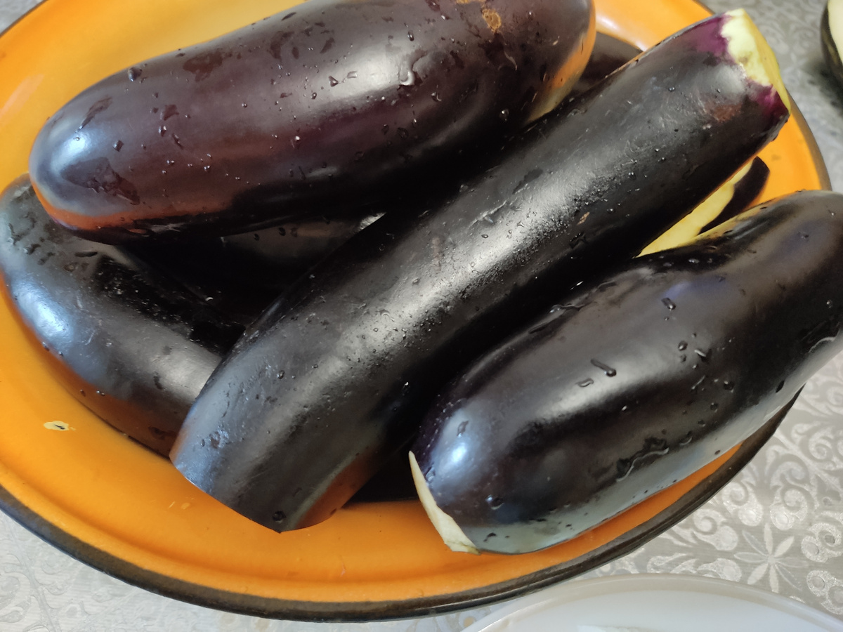 Приветствую всех, кто заглянул на огонёк. Икра из баклажанов, одна из заготовок, которая не остаётся на другой сезон. Её готовили ещё наши родители. Но все овощи резали, тушили и в баночки. Я тоже поначалу делала также. Дети не особо её любили. Попробовали измельчать на мясорубке. И что вы думаете, стали есть, и даже с удовольствием. Расскажу, как готовлю икру я. Количество овощей всегда приблизительно,сегодня взвесила всё. Баклажаны - 4 кг Морковь - 500 г Лук - 1 кг Перец сладкий - 2 кг и стручок острого перца. Помидоры - 2 кг Укроп, петрушка и головка чеснока. Растительное масло, сначала наливаю 500 мл, если будет суховато, то добавляю в процессе. Первым жарю лук до золотистого цвета, это важно. От этого зависит вкус икры. Следом, перекрученные на мясорубке, баклажаны. Тушу их минут 15 - 20. Потом морковь и перец, тоже измельчённые на мясорубке. Масло ещё 200 мл добавила. Ещё 10 минут тушу. Добавляю измельчённый чеснок. Помидоры перекручиваю и добавляю к овощам. С