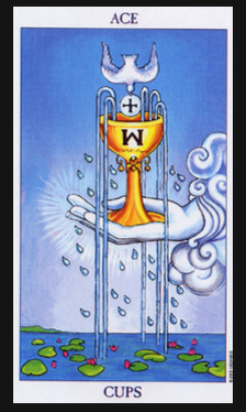 Потому, при появлении Туза кубков, как и любой кубковой карты, нам надо обращать внимание на то, как при этом работает голова (и наоборот, при выходе мечей, нам хорошо бы обратить внимание на присутствие в вопросе сердца, души, душевности, эмоций).