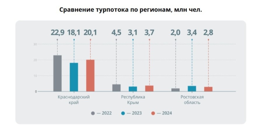 Итоги подводились по данным 2024 года. Сообщается, что вместе эти три региона приняли порядка 26 миллионов гостей.