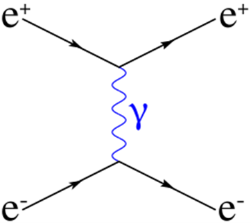 Диаграмма Фейнмана с изображением обмена виртуальным фотоном между электроном и позитроном