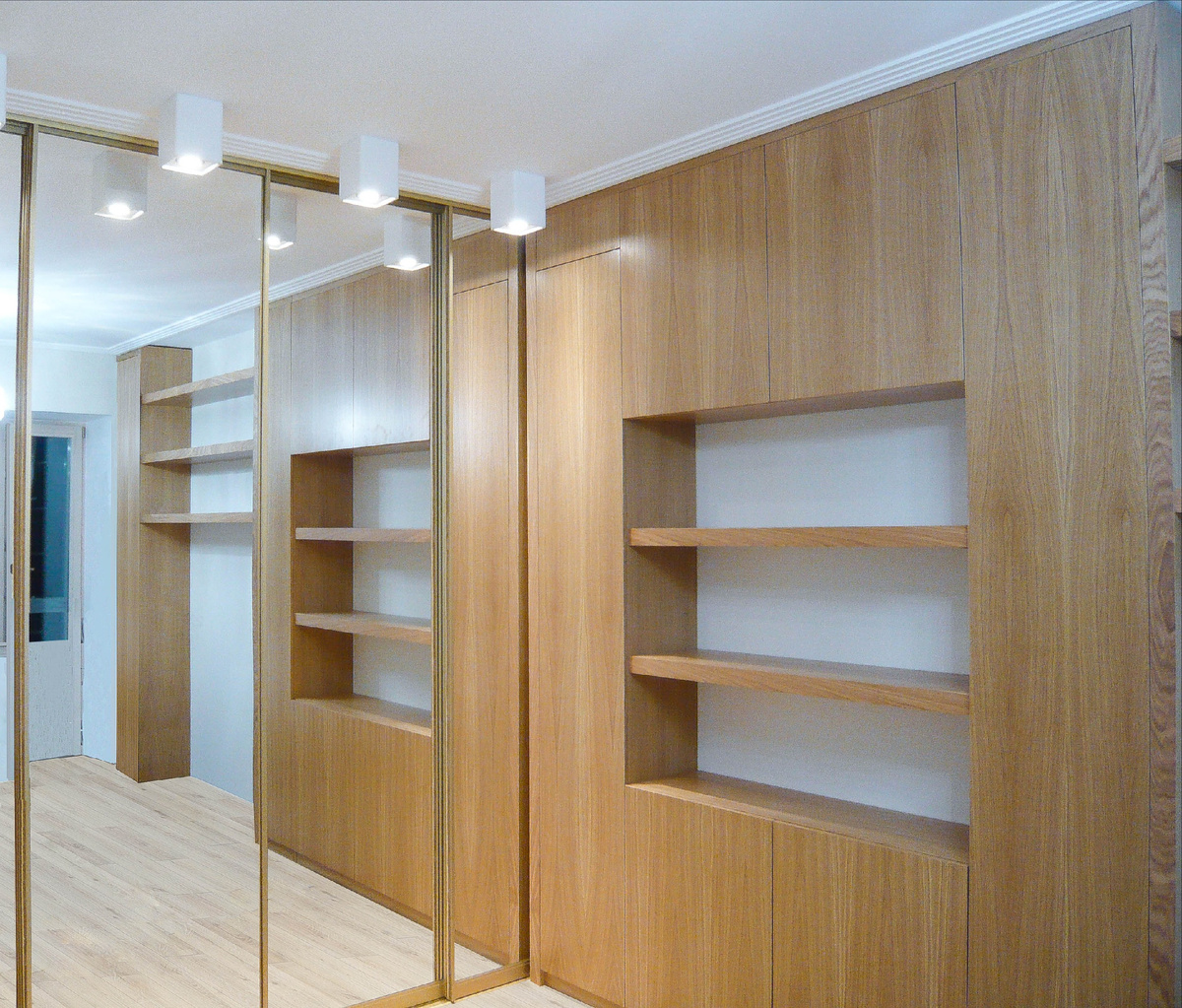 Самый практичный вариант — установить угловой шкаф. Он может быть высоким и вместительным, если вам нужно спрятать одежду, бельё или бытовые вещи. А может быть лёгким и открытым — например, в виде стеллажа под книги и аксессуары. Главное преимущество шкафов на заказ в том, что они идеально вписываются в размеры вашей комнаты и не «съедают» лишние метры. К тому же фасады можно подобрать под стиль интерьера: глянцевые для современного дизайна или с текстурой дерева для классики.