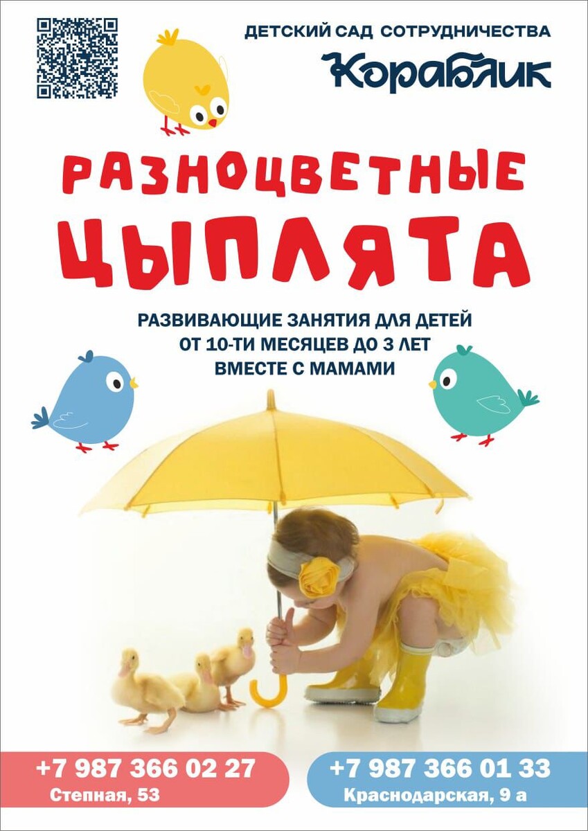 материал. Занятия в детском саду «КОРАБЛИК» разработаны специально для малышей от 10 месяцев до 3 лет. Они помогают развивать важные навыки и способности. Ваше участие делает процесс обучения ещё более увлекательным. Приходите на занятия: «Разноцветные цыплята». Подарите своему малышу возможность расти и развиваться в тёплой и любящей атмосфере. Как проходит наше занятие? Все по полочкам и с любовью: 1.