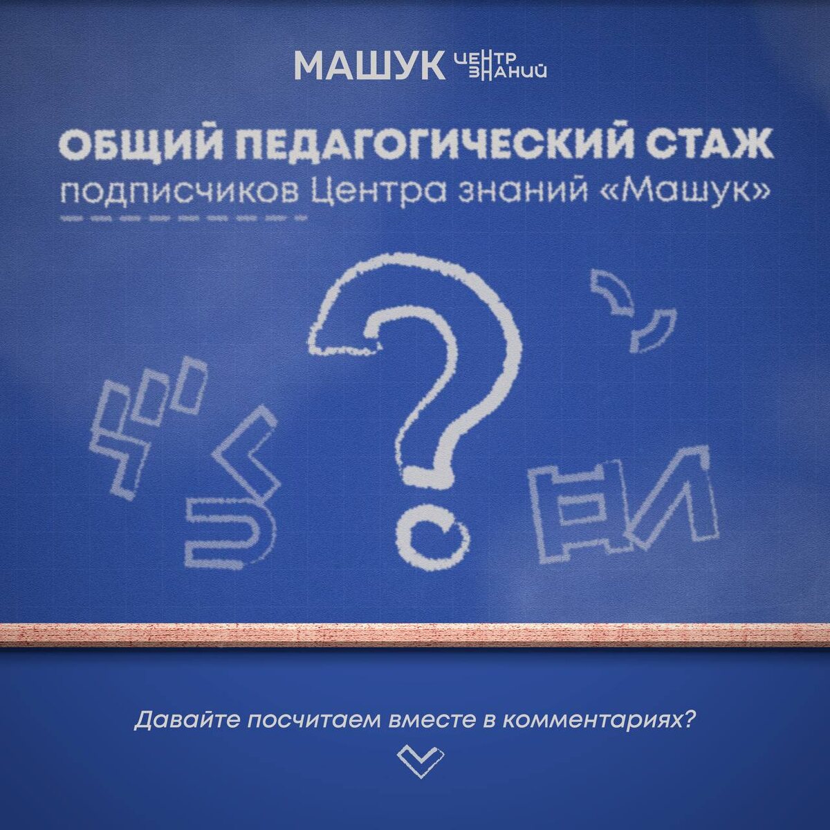 Учителя, давайте в честь предстоящего праздника поставим новый рекорд? 🤩 Для этого мы выходим к вам с одним важным вопросом 👇 «Сколько лет в сумме составляет педагогический стаж подписчиков 📚?» Только представьте: среди нас есть настоящие легенды педагогики, которые воспитали не одно поколение учеников, и талантливые новички, которые только начинают свой путь в профессии. 📌Никак нельзя пройти мимо и не оставить комментарий, поделившись своим стажем, ведь это позволит нам увидеть космическую цифру в День учителя! Но это еще не все 👇 С сегодняшнего дня на стенде Центра знаний «Машук», который располагается на Форуме классных руководителей, можно принять участие в нашем исследовании о важности неформального образования 👨🏫