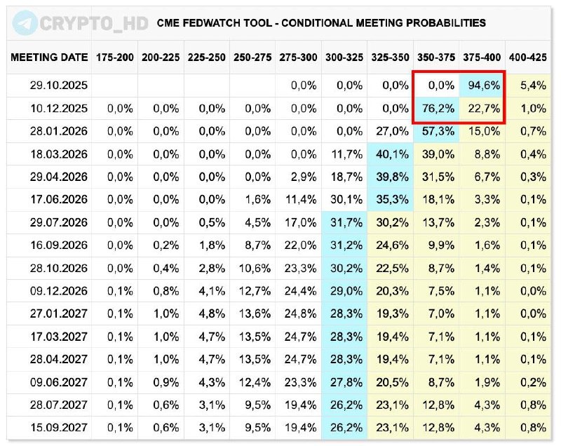💥 FedWatch: Увеличилась вероятность еще 2 снижений ставки ФРС в этом году – в октябре и декабре по 25 б.п. (на отчете ADP) Crypto Headlines