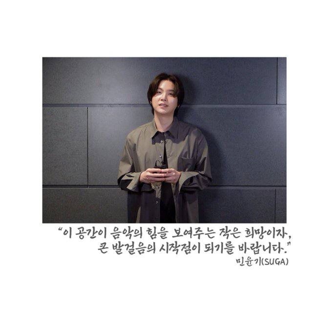 🔮 Я надеюсь, что Центр Мин Юнги станет маленькой надеждой, которая продемонстрирует силу музыки, и отправной точкой для большого шага вперед. Мин Юнги (Шуга). #SUGA @kumihobts