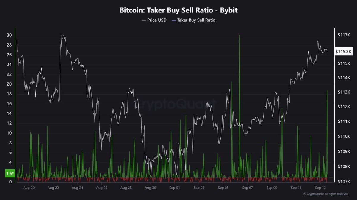 🚀💰 #BTC's Taker Buy/Sell Ratio just soared to 18.8! This means aggressive market buys are taking the lead