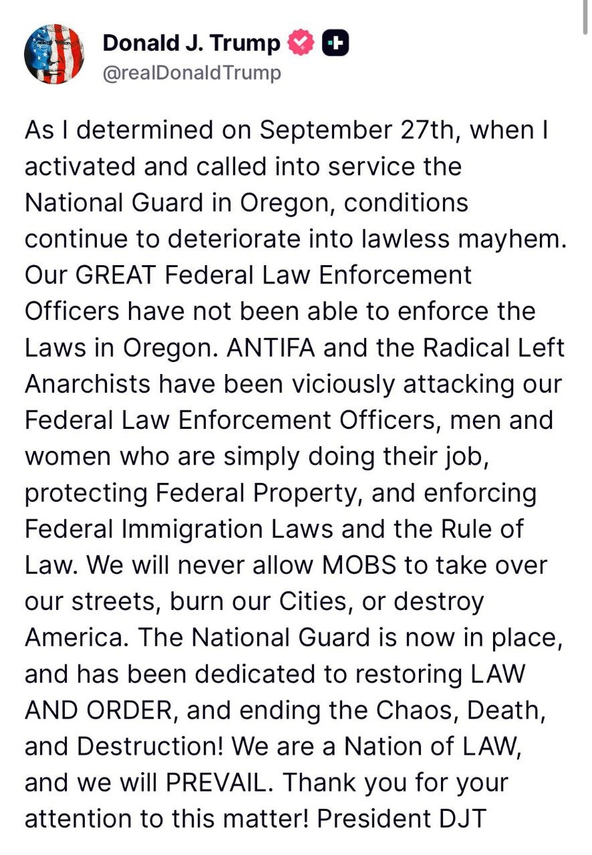Trump says he won't let Antifa 'MOBS take over our streets, burn our cities, or DESTROY America' Confirms National Guard in place in Oregon 'We're nation of LAW and we will PREVAIL'