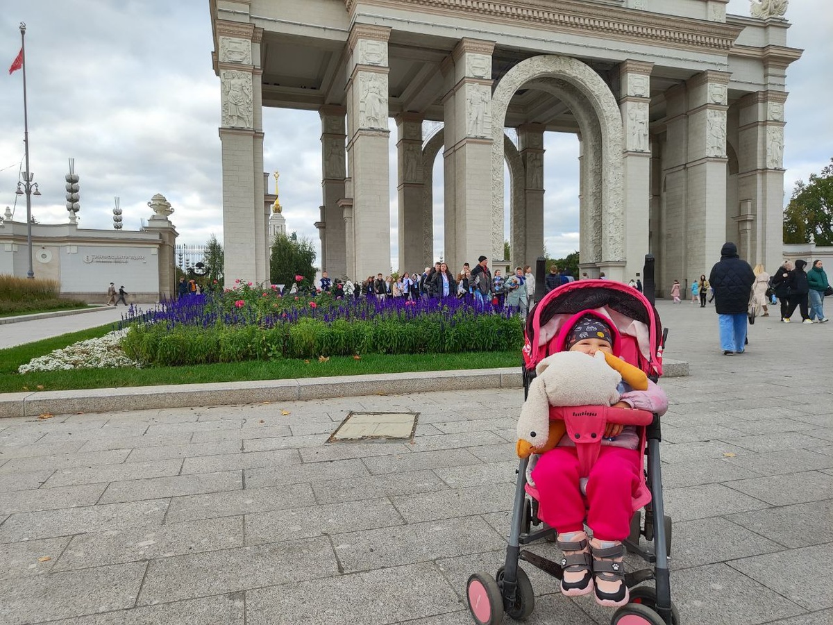 Потом, правда, подумала, что все же это вопрос безопасности хотя бы в том же метро. Платформы открытые, вдруг ребенок дернется. Пусть лучше сидит в коляске. Взяла. И не зря, потому что обратно по ВДНХ уже у меня ребенок не мог идти ногами. ВДНХ она прошла только в одну сторону и те частично на канатной дороге проехала. Думаю, тут не только дело в выносливости, но и еще в эмоциональном состоянии. Ребенок устал от шума, людей, большого пространства.