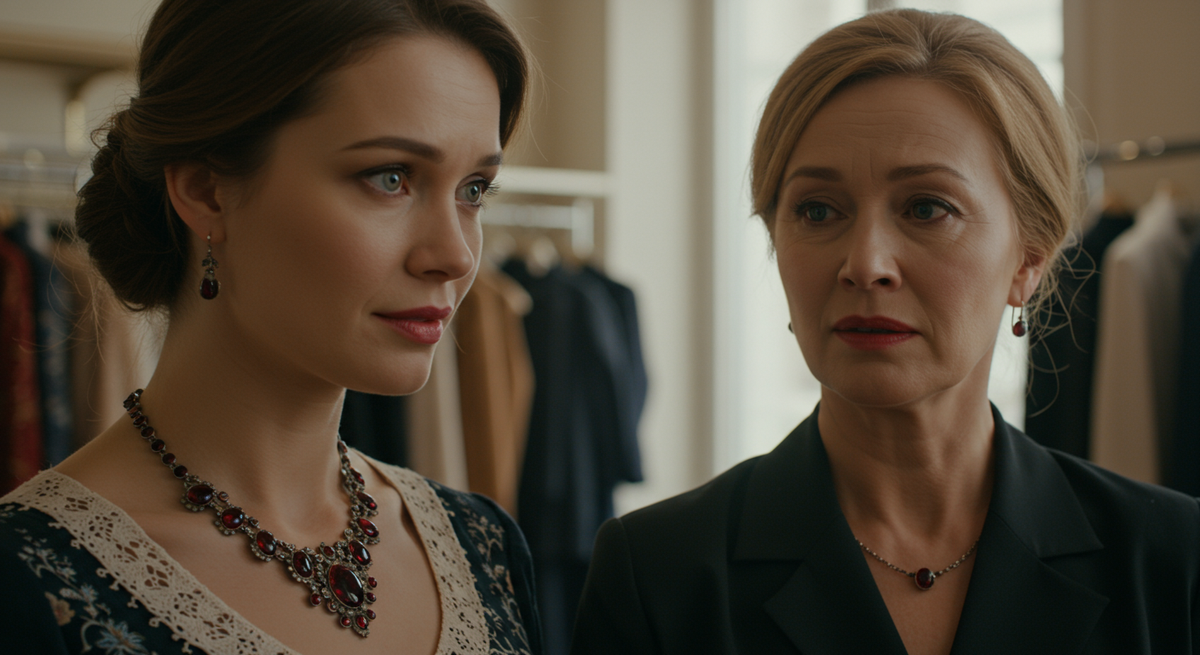 Лариса отошла к стойке, делая вид, что проверяет кассовый аппарат. Сердце стучало глухо, как пойманная птица. Она смотрела на профиль Натальи, на её плавные движения, и вдруг взгляд зацепился за блеск у её шеи. Тёмно-вишнёвые камни, оправленные в тусклое старинное серебро. Гранатовый гарнитур. Серьги-подвески качались в такт её шагам, отбрасывая кровавые искорки.