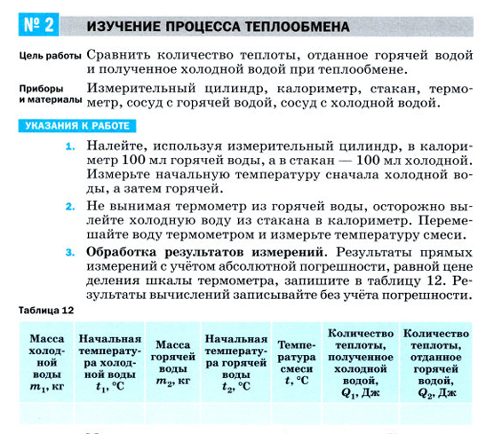 Выполним лабораторную работу из учебника Перышкин А.В 8 класса стр. 230. В учебнике данная работа называется "Изучение процесса теплообмена".